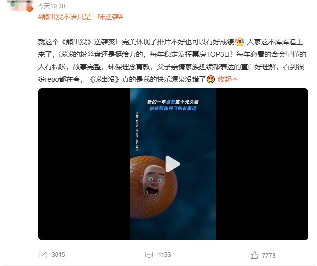 但自上映第一天起,除了超过《熊出没》外,该影片票房不曾达到预期。