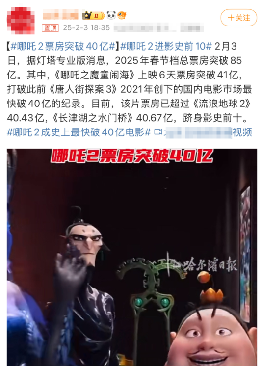 【2】《哪吒之魔童闹海》进入中国影史票房前六_界面快报